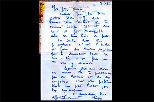 Dans les deux pages qui suivent, on trouve tout d’abord un petit mot du père d’Ariane (sur lequel elle a imprimé sa bouche en rouge à lèvres), puis une lettre :