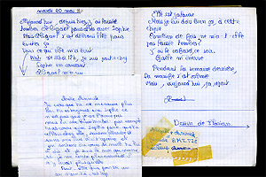 Au bas de la page de droite, dans un petit encadré collé au cahier, on lit :