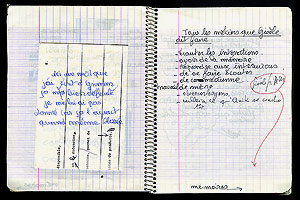 Sur une des pages de l’entrée du 27 décembre 1981, Ariane-Annick a collé un petit mot plié en quatre qu’elle ne donnera pas à sa mère à qui elle reproche d’avoir “inspecté” le cahier de mémoire de sa fille comme l’indiquent sur la page de droite du cahier les mots que « Gisèle », sa mère, a ajouté au texte d’Ariane.