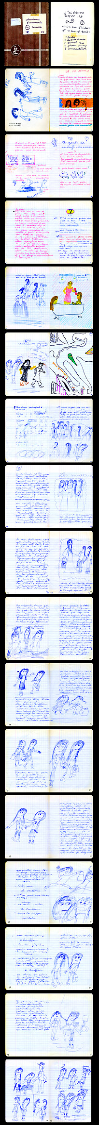 3eme [épisode] (Reprise de la petite histoire du « garçon bête »). Comme il faisait un tour dans la rue avec Vanie et Denis il vit un petit garçon et il cria: «Oh! un grand petit mince gros garçon fille! »; alors les enfants continuèrent et ils se quittèrent[.] 6eme