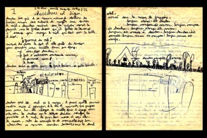 Chauchau était près de sa maman en train de cueillir des fraises. Nounou était en train de manger une tartine de miel. Chauchau entra dans la cuisine, ouvrat le placard, mit les fraises, disant qu’il fallait les laver, et s’avança pour manger le miel qui était sur la table. Il disat : « Ze veux du miel ». Nounoute lui passa le pot et alla près du tiroir pour prendre une cuillère pour son époux.