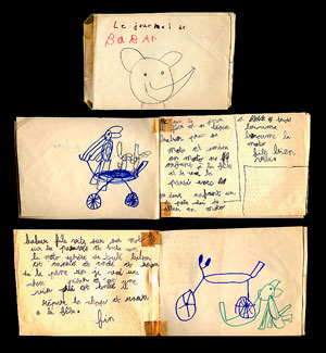 Babar prend sa moto et emmène en moto ses enfants à la fête